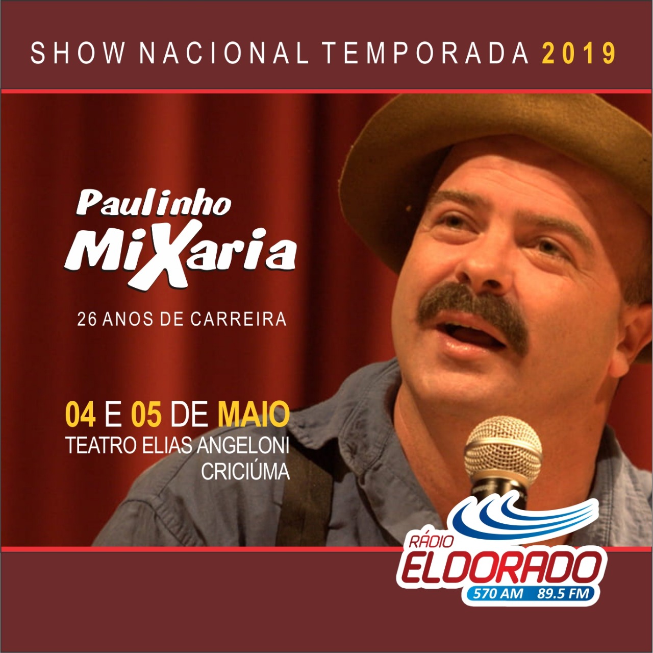 Humorista estará na cidade nos dias 4 e 5 de maio em parceria com a Rádio Eldorado