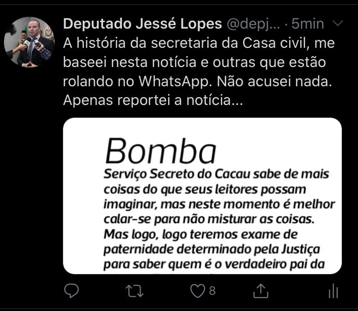 Deputado Jessé Lopes dá luz a boato que estaria agitando a vida pessoal do governador