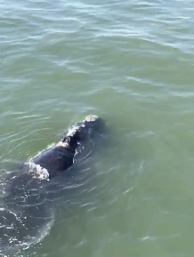 Baleia nada próximo a plataforma no Balneário Rincão