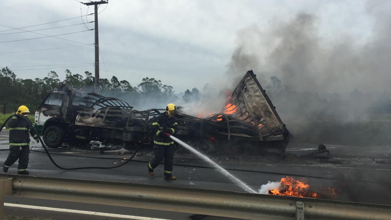 ATUALIZAÇÃO: Carreta pega fogo na BR-101