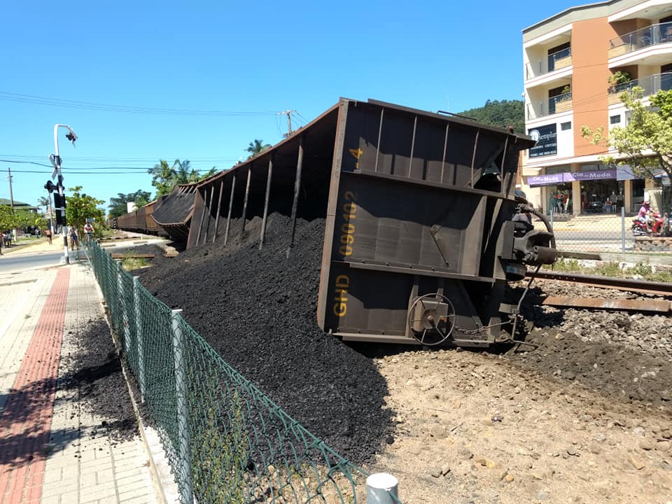 Trem com carvão descarrila em Morro Grande